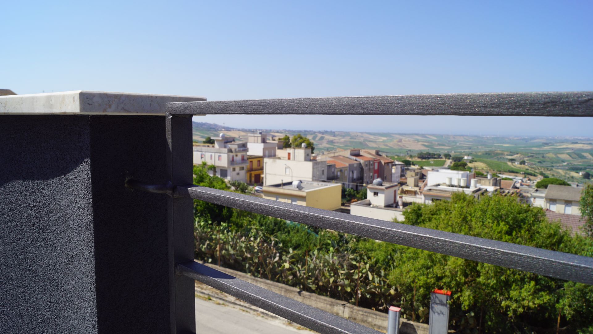 Un gioco di vuoti e pieni, quasi come un labirinto. Questa ringhiera in ferro è stata progettate e costruite per assicurare e garantire sicurezza e per evitare di coprire il panorama.